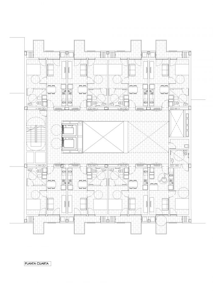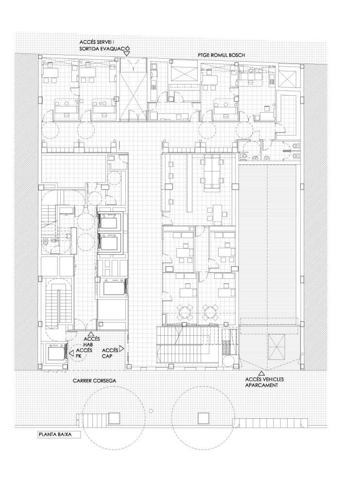 The ground floor is strongly conditioned by the need for independent access to each of the different uses. Space distribution is very influenced by the strict dimensional requirements of the Primary Care Center and housing minimum surface requirements. All that is reflected in the design of structures, facilities and fire protection.