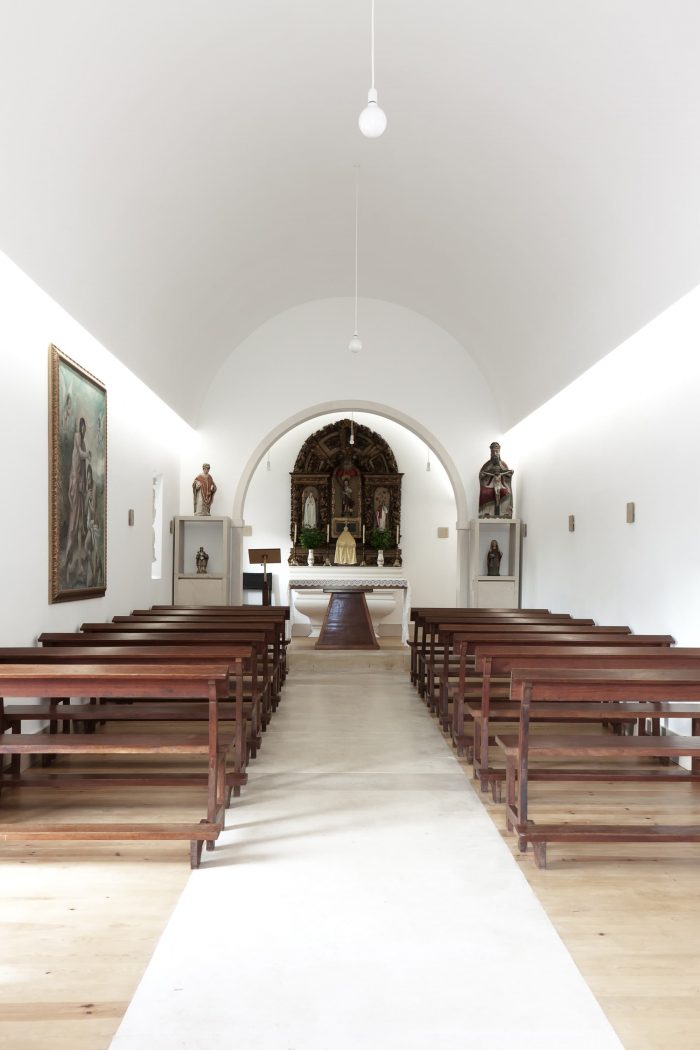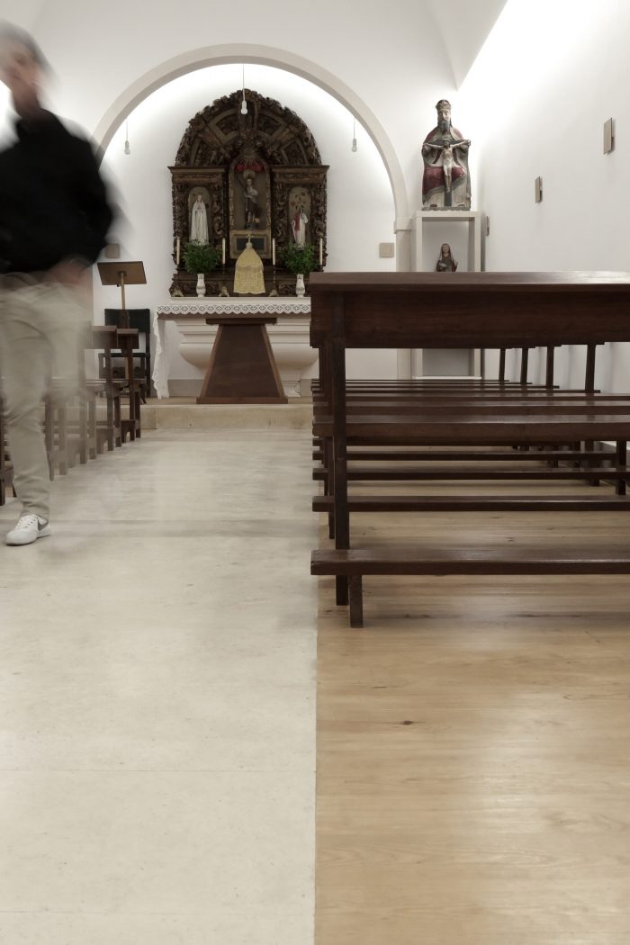 Great spatial richness clarified by changing its scale with the program, in which the lights, transparencies and broad prospects assumed a leading role in defining the new spaces, taking as its premise the existing avowedly abstract and scenographic white walls, conveying calm and lightness to the space, staging religious spatiality, ensuring a current intervention, respecting the existing heritage and its architectural character, giving it a scenographic spatiality reusing existing objects, thus creating its identity based on the history values.