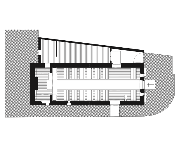 恢复内部的不对称安排,建筑的历史记忆,建立与现有的破损和残缺的功能核心的关系类比,它将重新获得其旧的尺寸。新的建筑系统的基础上,尽可能恢复原来的结构,取代旧的木梁,然而这些木梁已经倒塌或消失了。