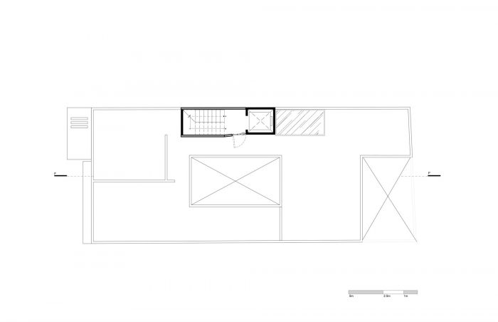 The building comprises 5 apartment units, 3 facing the exterior and 2 interior townhouses with private terraces.