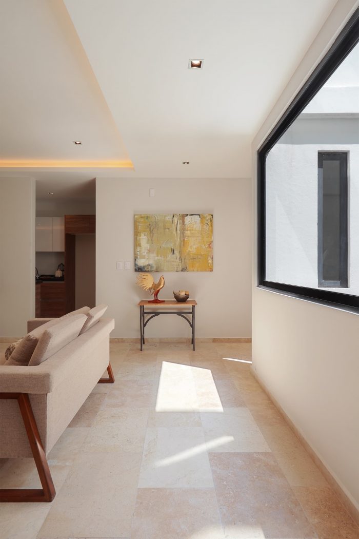 Capulin 59 is a boutique residential building located in one of the best areas in Colonia del Valle, Mexico City. The 240 sqm land where the property was built, located in front of a small park, has a rectangular shape with 10 meters street front.