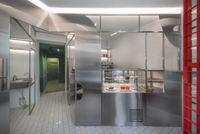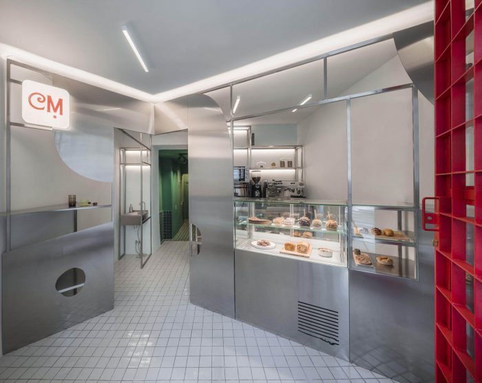 Color and materiality are the main protagonists in the overall composition of the project. Red opens the door to cakes and closes it for us between ovens. The tile connects our spaces. The surface glosses create a visual homogeneity capable of understanding the whole as one, despite the distance of shapes and colors between rooms. Cara Mela is an experiment that suggests a vision of Retail adapted to its current needs: a Take-Away architecture for a hybrid consumption between digitality and the presence.