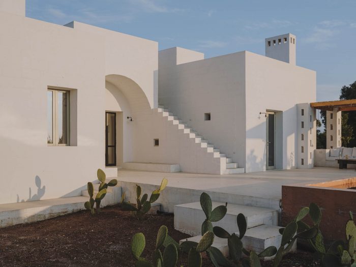 卡多别墅是由安德鲁-特罗特工作室设计的3个卧室的房子,他还设计了Masseria Moroseta。与Masseria一样,Villa Cardo也是用当地材料和传统的建筑方法建造的,以确保Pugliese乡土风格的闪耀,使建筑在夏季保持明亮、通风和凉爽。