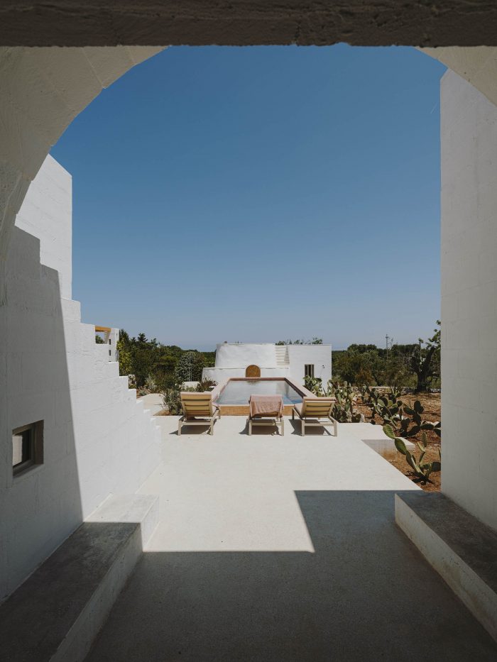 Villa Cardo is a 3 bedroom house designed by Studio Andrew Trotter, who also designed Masseria Moroseta. Like the Masseria, Villa Cardo has been built with local materials and using traditional building methods to ensure that the Pugliese vernacular style shines through, keeping the building light, airy and cool in the summer.