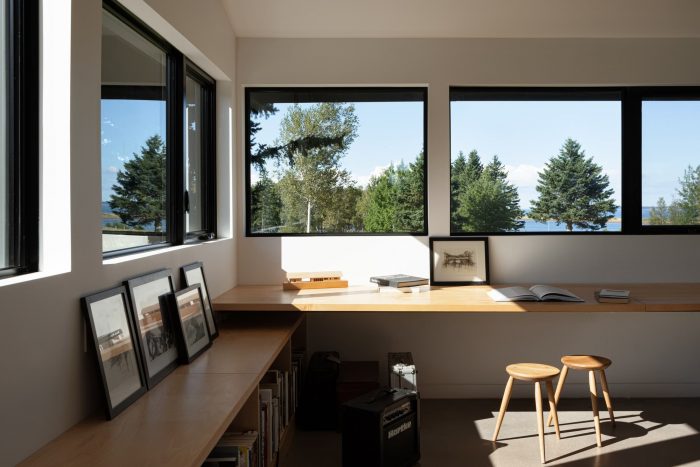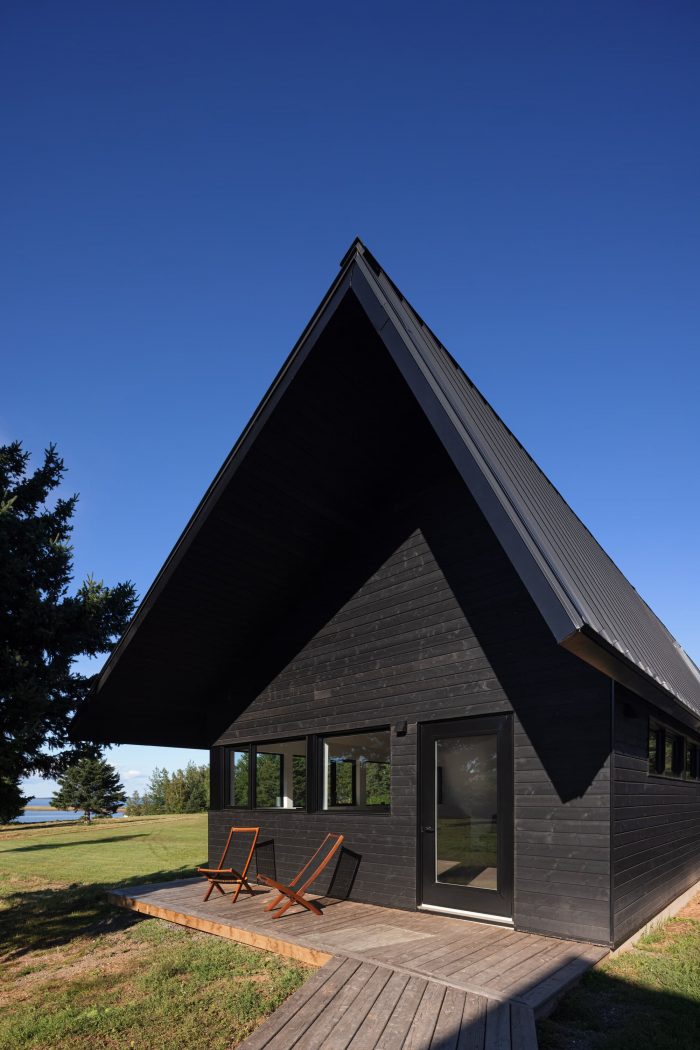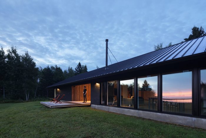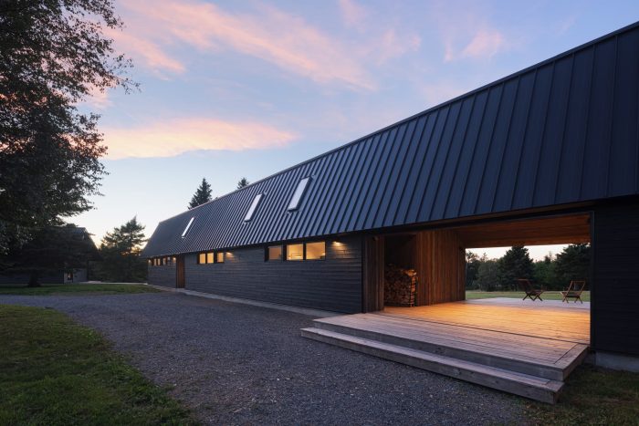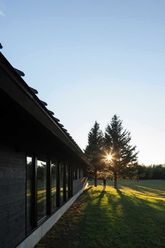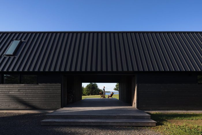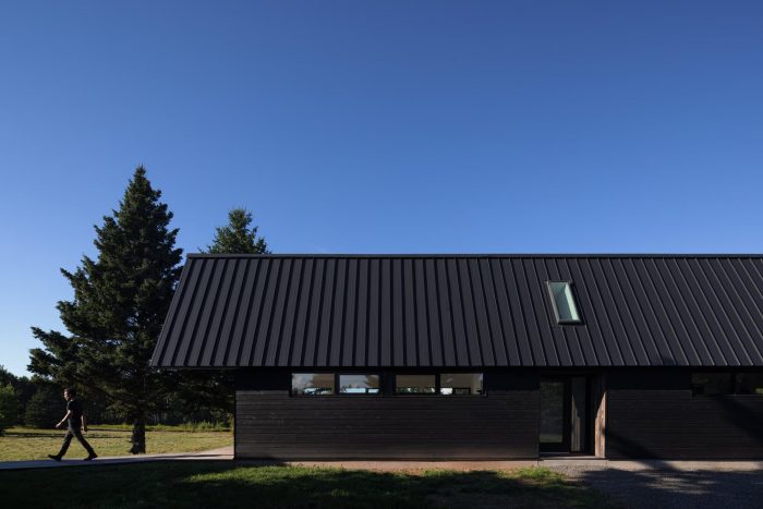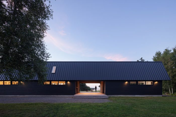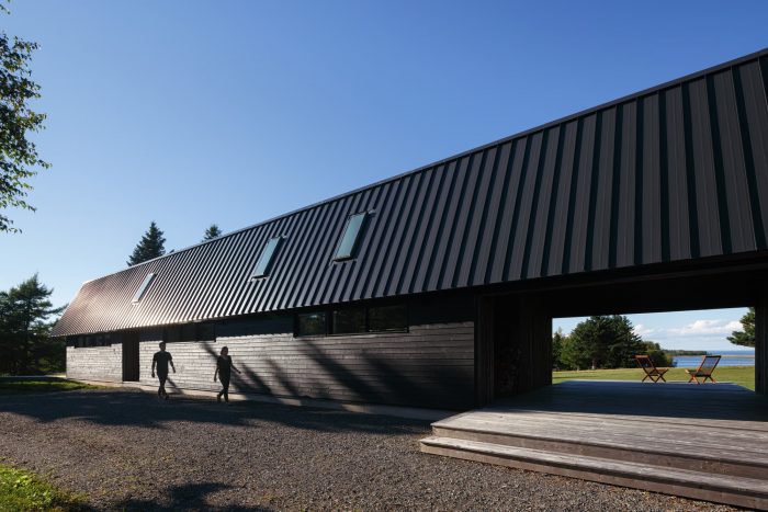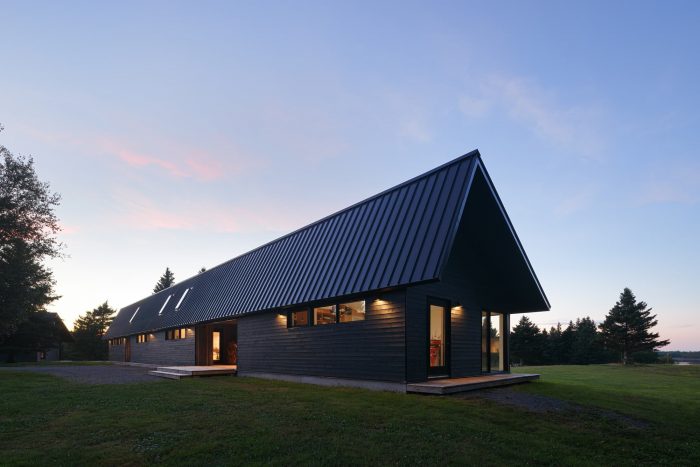 Caribou Point Studio is a residence designed for two artists in the rural community of Pictou County, Nova Scotia. The elongated linear form stretches through the natural terrain to dedicate a continuous natural view.