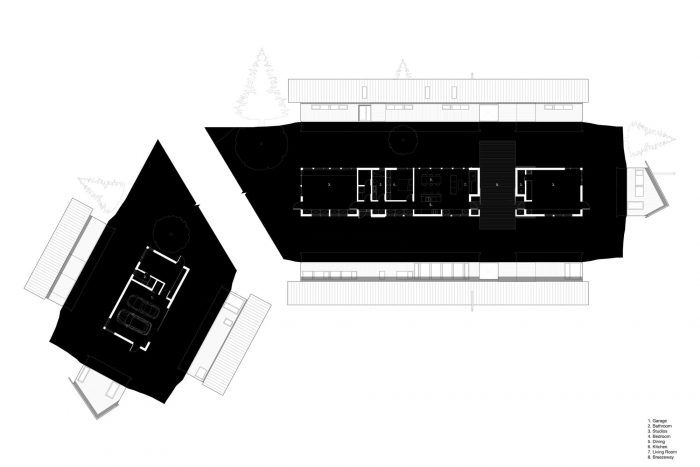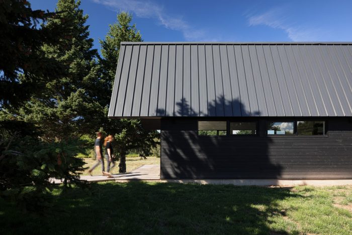 The continuous form provides a unified space that benefits from vaulted ceilings, and a central hallway that runs the length of the building. The building is penetrated by a breezeway which gives outdoor space sheltered from the extreme elements.