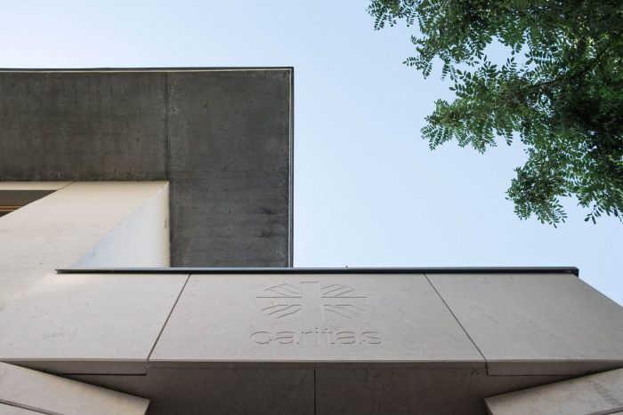 On both floors there are restrooms. The ground rooms have direct access to the garden, while the upper floor Caritas school and the big lecture hall have their own terraces. On the ground floor, there are baby rooms, as well as rooms for motion-competence and medical dispensary, while the upper floor houses offices, the Caritas school, and a big capacity multifunctional lecture hall. Next to the multifunctional hall, there is a small coffee area that is designated for colleagues, guests, and all the participants of the events. The coffee area can be used only for preparing the necessities of the planned events (guests, program participants), and for colleges it offers room for a snack.