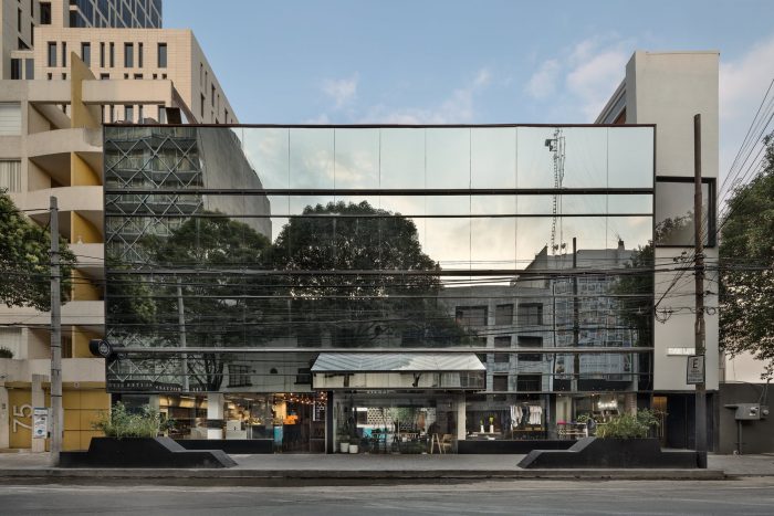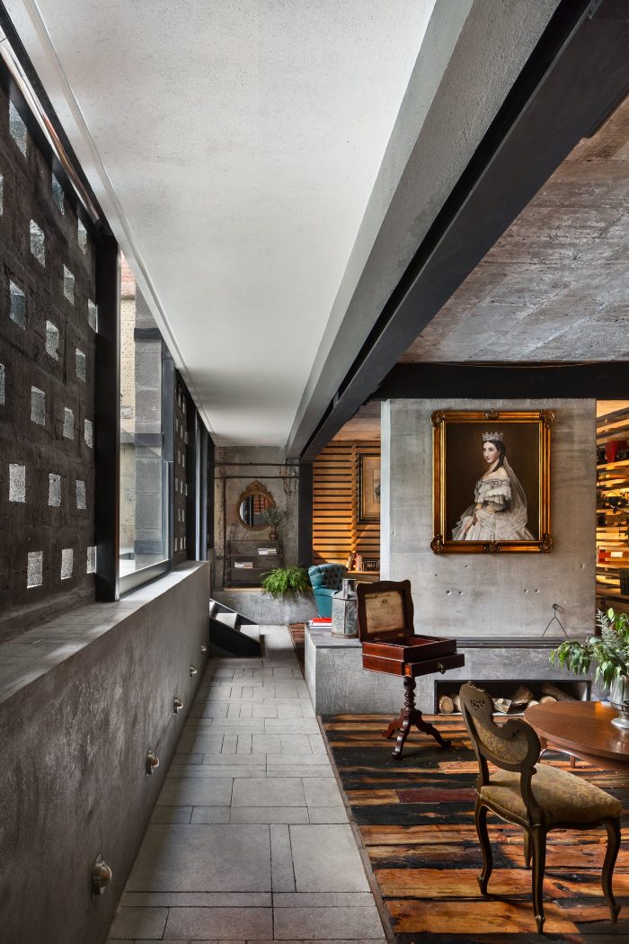 The facade, which we decided to keep intact, was probably remodeled in the eighties, wanting to impose an air of modernity to the building they covered it with an enclosure finished in glass mirror. Colonia Cuauhtemoc, which today is a very culturally active area, shared the same process of deterioration for several years when the periphery competed with the central city. The decision of what to keep and what to remove was a playful and gradual discovery process.
