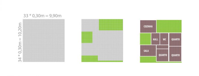Initially, we determined that the house would have 70sqm, enough to provide users better quality of life (Brazil´s federal government has delivered homes with approximate 40sqm in social housing programs as Minha Casa Minha Vida -literal translation My House My Life- without expansion possibility).