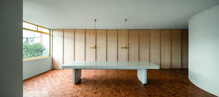 A 1960s apartment, originally planned by Russian architect Vladimir Kaspé in a central area of Mexico City, is radically transformed by Zeller & Moye with the aim of restoring the modernist spirit of its original designer, while incorporating the needs of contemporary family living. The 250-square-meter dwelling, which is part of a modernist multi-family housing block, is developed over two levels with helical staircases that favor the spatial fluidity of the apartment.