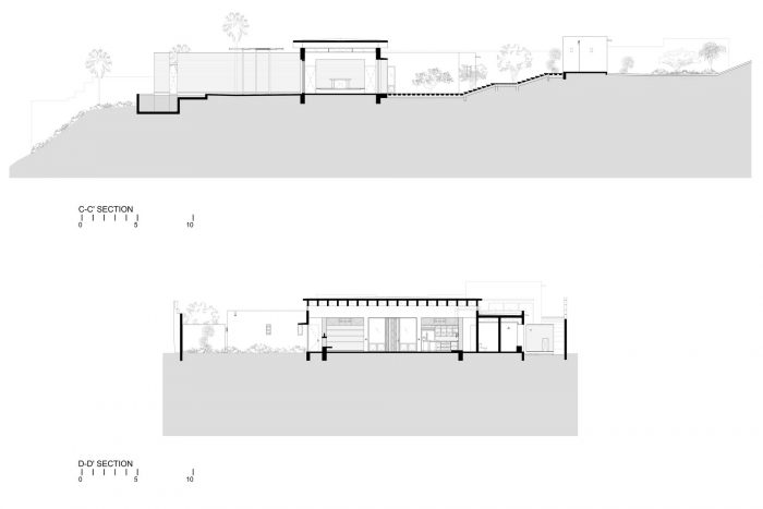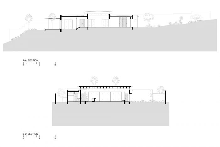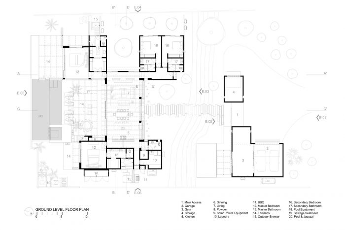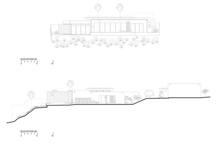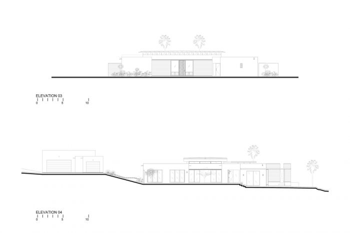 为了让客人了解离网技术,太阳能电池板被暴露在大房间板的边缘,以便在到达时很容易看到,而太阳能电池室可以通过入口粉旁边的玻璃门清楚看到。其余的设备是隐蔽的,其中包括一个废物处理厂,一个用于饮用水的大型地下蓄水池,不幸的是,这些水必须用卡车运来,但为了应对这种情况,我们增加了一个用于景观灌溉的处理水的蓄水池,以及一个用于加热水、炉子和按摩浴缸的丙烷气罐。同样,由于这是我们的第一个太阳能项目,自然和经济迫使我们在设计和功能上创造效率。从一开始到最后,我们想在下加利福尼亚创造现代建筑,利用水平线、大型的户外-室内遮阳空间和当地材料来建造一个简单而非凡的房子。