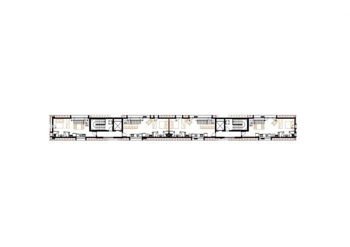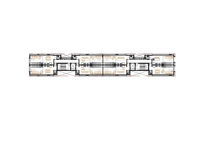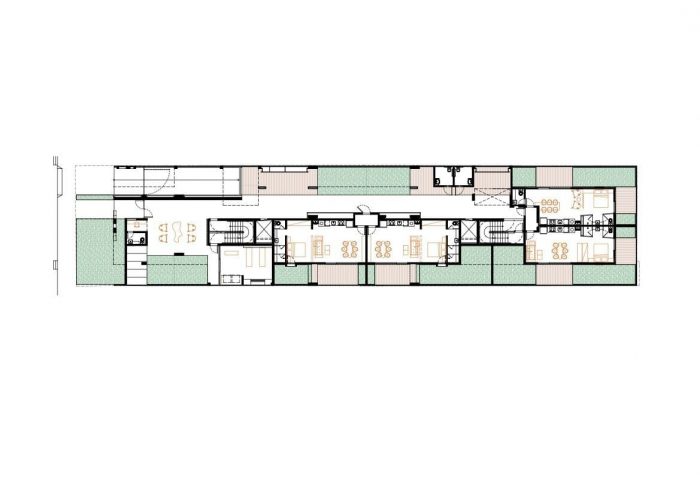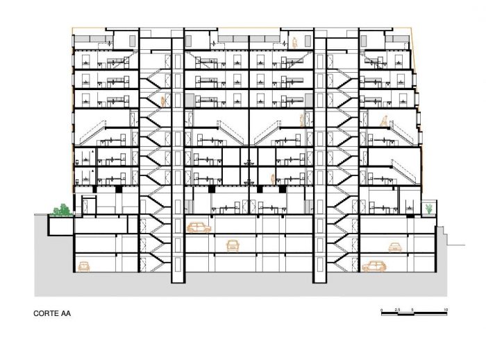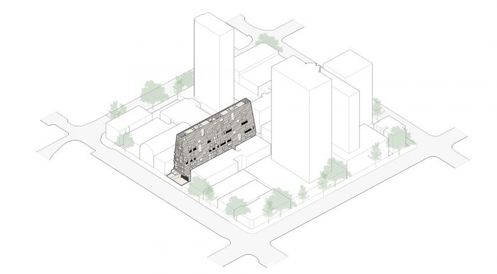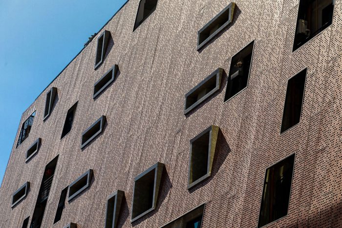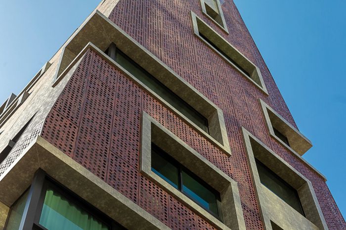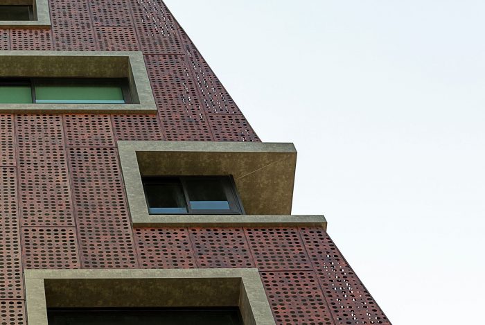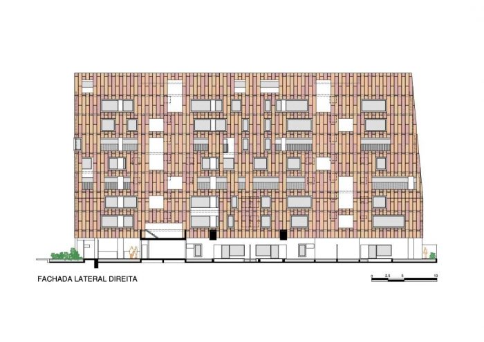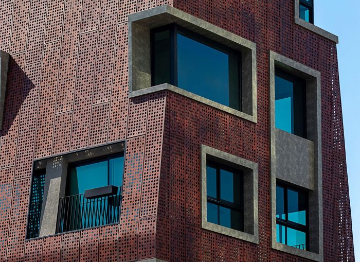 The skin covering the building also provides thermal comfort to the units. Away from the masonry, it provides shading for the fences and good ventilation through a mattress of renewable air. From that perspective, sustainability guided a large part of the project’s choices. Due to the reduced dimensions of the land, and minimal rooftop space for installing equipment or photovoltaic panels, it was necessary to find a solution that would avoid the entry of heat, to the detriment of an air conditioning project.
