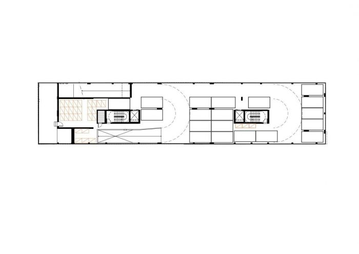 The building’s pyramidal shape, which is the result of staggering, also made it possible to allocate technical areas on the external face of the masonry, as well as on the internal face of the skin, ensuring a clean and unadorned plastic.