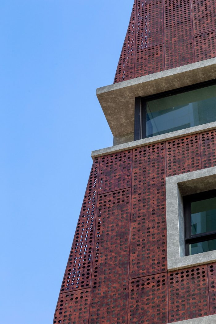 建筑物的结构和建筑项目之间的相互依存关系使其具有极大的创造性自由,最终形成了最突出的元素:第二层皮肤,像衣服一样 "穿 "在建筑物上,赋予其独特的特征。使用的材料是铝,涂成土红色的深褐色调,暗示了米纳斯吉拉斯州丰富的原矿。