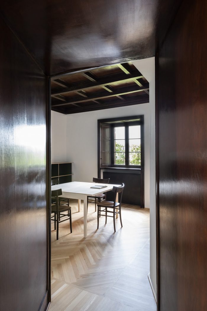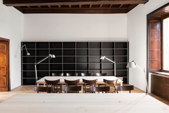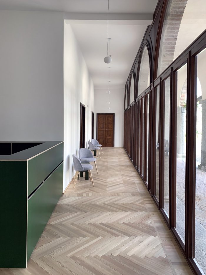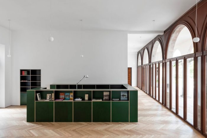 Castello di Ariberto is a minimal space located in Lombardy, Italy, designed by Marco Ortalli Architetto. The project involved the partial recovery of the remains of the Castle of Ariberto da Intimiano – former barracks of the “Dino Piras” finance guard. The project involved a conservative restoration of the historical building combining it with a socio-cultural use: the municipal library, an events room and spaces for associations of the municipality of Capiago Intimiano. The internal courtyard is designed so that it can host the organization of events and gatherings. The external area is arranged in an external green. On an urban scale, the goal is to reunite the Castle with the new Park, by demolishing the volumes created by the Guardia di Finanza for dog training and the arrangement of the current parking area.