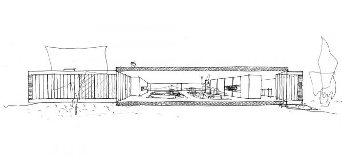 For this reason, the intention is to set the house on a slightly higher level than this one, releasing it physically from the threshing-floor so that it wouldn’t pervert it and so that it can use it as a resting place, as an outside terrace, as a well-defined platform, whereby the house is implanted according to its measures and close to it, but with some formal autonomy at the same time.