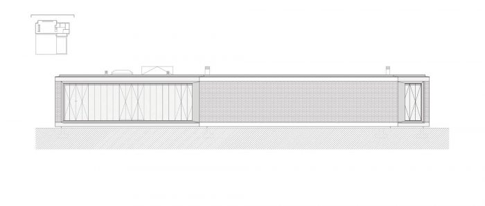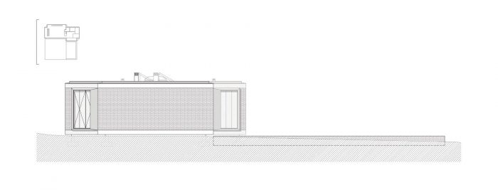 The materials used on the exterior are: shale’s masonry identical to the one existent on the site, covering all of the structural walls; the white concrete for the lower and upper slabs that are visible; the concrete will be coffered with wood boards without any finishing so that it can be printed on it the wood’s texture.