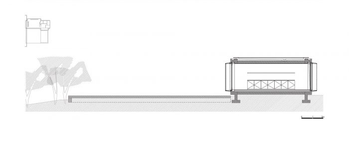 出于这个原因,我们打算把房子设置在比它稍高的位置,把它从打谷场上释放出来,这样它就不会破坏打谷场,这样它就可以把打谷场作为一个休息的地方,作为一个外面的露台,作为一个明确的平台,这样房子就可以根据它的措施植入,并接近它,但同时也有一些形式上的自主权。