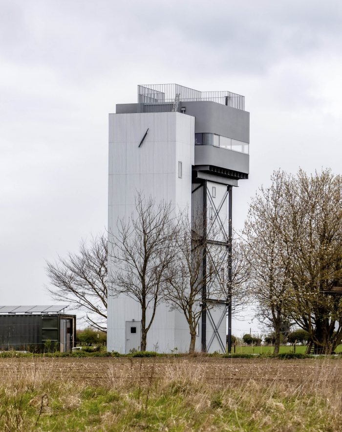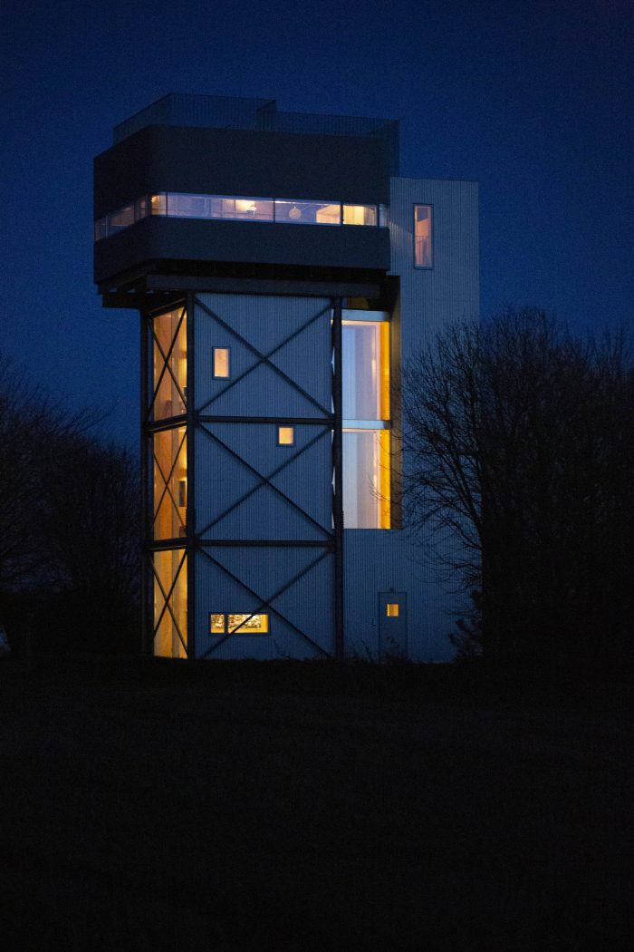 By the ruins of a Castle, a Priory, a city gate, rises one modern anomaly, steadfast against all elements, a relic from the industrial age. A found object, a disused landmark, towering out of shielding trees, loved and unloved by the village of Castle Acre. Restored and reused on a shoe-string budget, Rusty tank a panelled Tudor hall, Hung timber rooms a timber spiral stair. Minimal intervention, purity of structure, Ivy growing, wind blowing a field of barley, Nature returns for the romantic industrial ruin