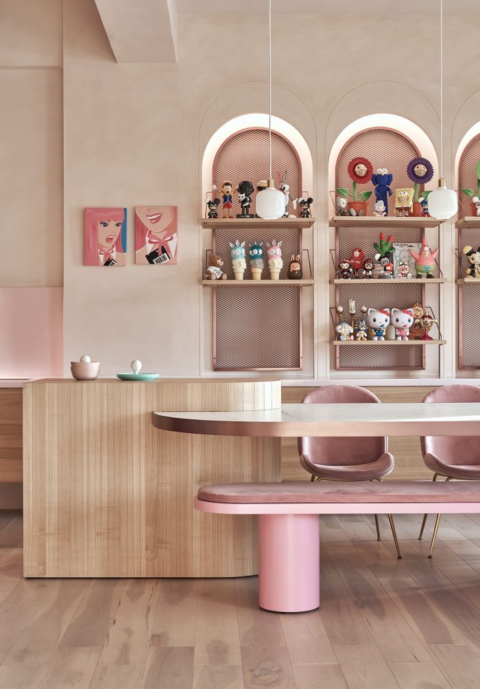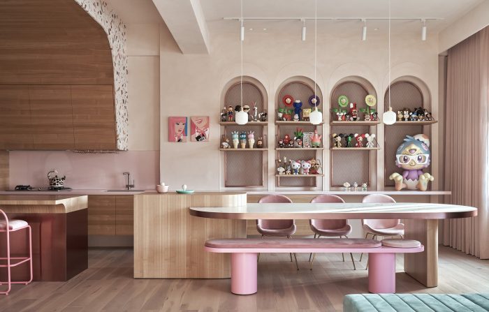 The project is a three-floor house by the sea. For the owner, it is where to relax and have fun with her three cats on holidays. To build a pure pink space, we use the pink mineral paint as the base of the walls and ceiling and select the different pink materials in natural colors to compose the mixed style.