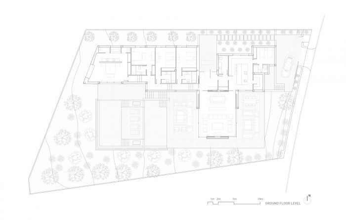 建筑不是强加的,而是为了自身的利益而迁就获得土地的精华。该方案在底层全面展开,除了为用户提供简单的生活方式外,还围绕白天的空间组织功能,包括已建和未建的空间,显示了对环境的承诺,不至于太突出。
