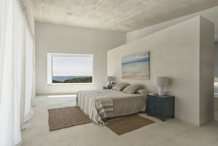 The main living room opens up to views of the southern coast of Menorca while being protected from the Tramontana wind, allowing the sea breeze to flow through and cool the room in summer, while in winter it allows adaptation to the intense winds with a series of strategically located outdoor spaces.