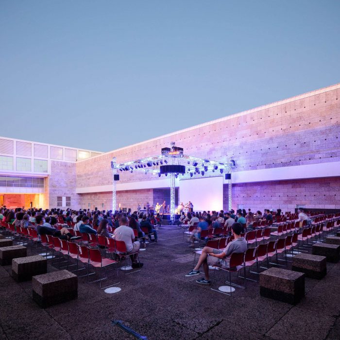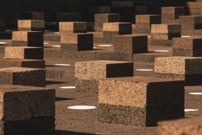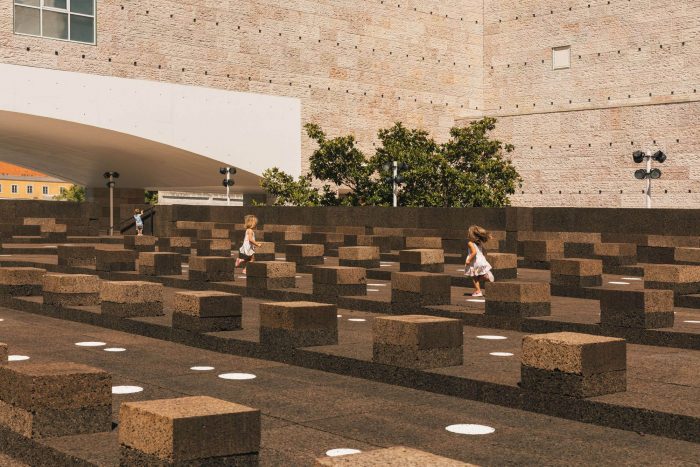 Atelier Bak Gordon responded to this invitation, designing an open-air auditorium that occupies half of the CCB square. The extension of the intervention allows a total sensory immersion in the material/cork, savoring its texture, odor, temperature, and, of course, the way in which sounds are propagated or absorbed.