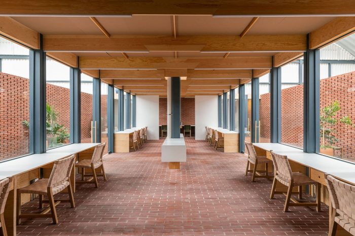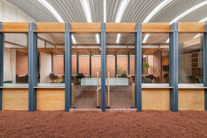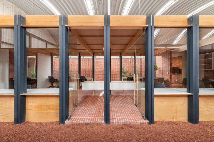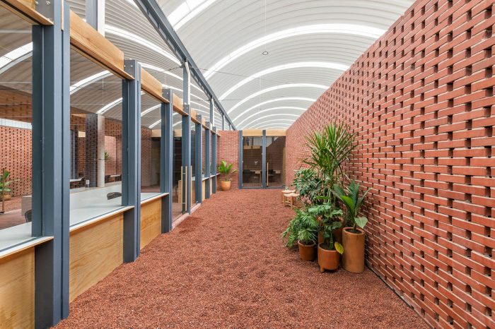 它的材料性是由自然色调的砖、木材和金属结构代表的。砖有一个很大的特点,就是可以用作墙壁、铺路、产生盲目的外墙或格子结构。