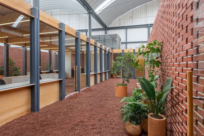 A small oasis or lung that promotes protection from visual and acoustic pollution and provides through its patios green areas and controlled spaces for adequate work experience.