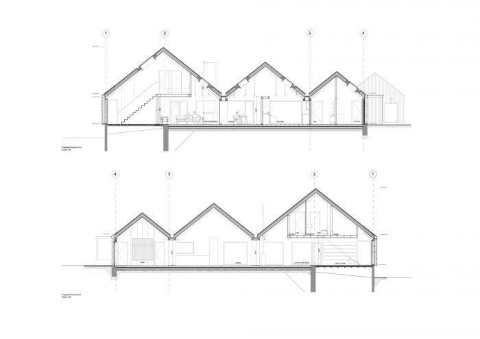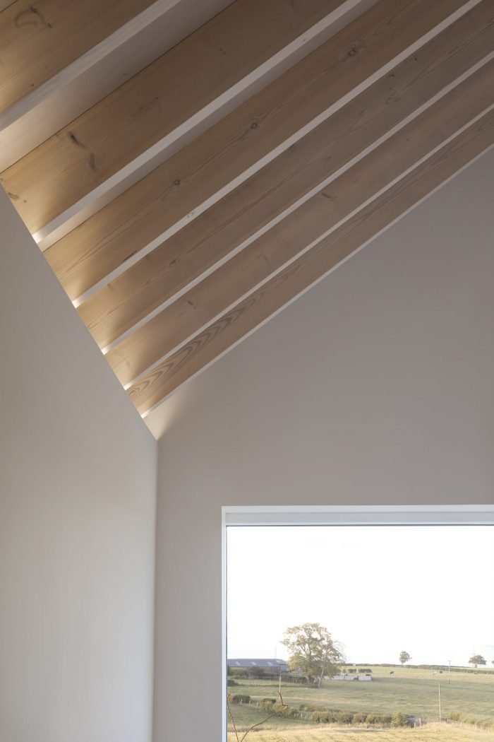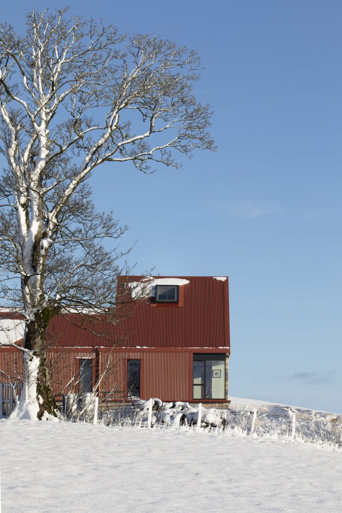 为了保持较低的运行成本,房子采用了高度绝缘的三层玻璃,空气源热泵提供热量,超级绝缘的金属覆层,以及雨水收集系统。在外部,红色的正弦形包层参考了该地和周边地区的农业遗产,同时加强了房屋在更广泛的景观中的存在。外部还使用了再生砂岩包层,进一步将Ceangal房屋固定在其环境中。房子的名称与斯考特的盖尔语农场的起源有关,该家族最早的经营活动是在1600年代。Ceangal "这个词来自Scot的盖尔语,意思是 "结合"。