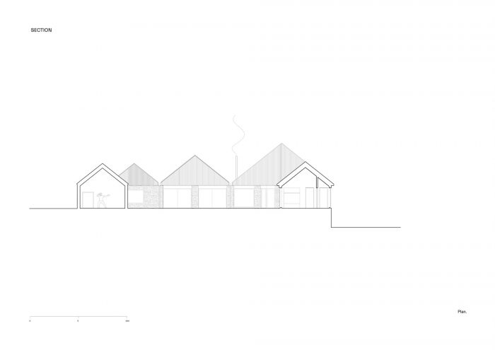 体积是Ceangal之家的设计原则的核心。房子的特点是三个倾斜的红色屋檐,从东到西的体积不断增加,这提供了视觉上的兴趣和宽敞的室内空间。在内部,这些体量容纳了大厅、厨房、餐厅、客厅和阅览室,最大的屋檐的第一层有一间客人的卧室。南北翼包含孩子们的卧室,通往房子最北边的主卧室。