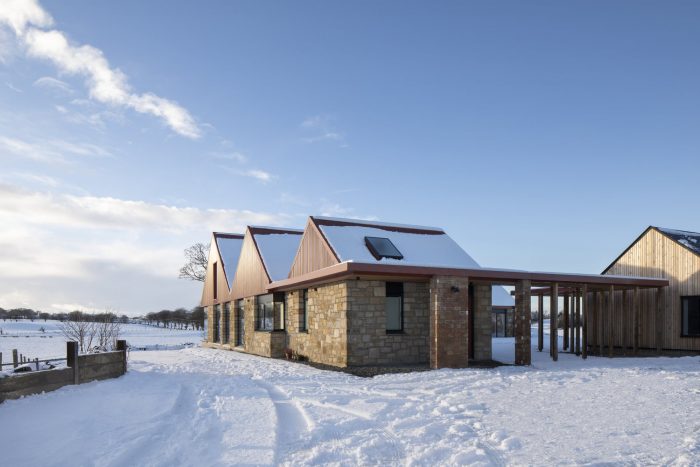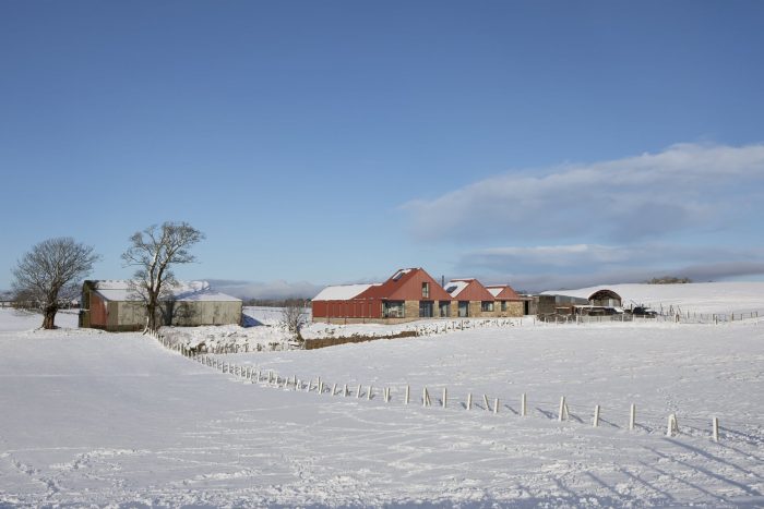 Loader Monteith’s Ceangal House marks a new, architecturally striking heart of a working farm in South Lanarkshire, Scotland. Loader Monteith completed the new build home for a young family of five, incorporating materials from the existing buildings on-site to continue the family’s long-standing connection to the land. Loader Monteith was briefed by clients, James and Lorna Hamilton, to design a new ‘outstanding home of architectural interest’ to replace the original 1800’s steading buildings that had long since fallen into a state of disrepair.