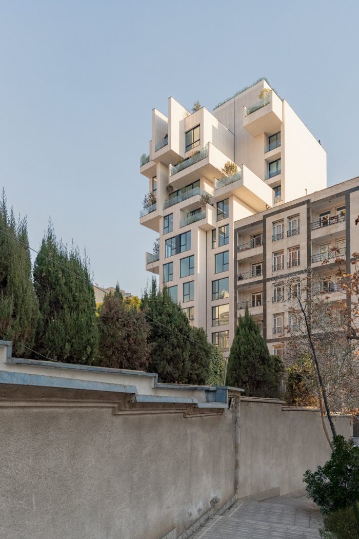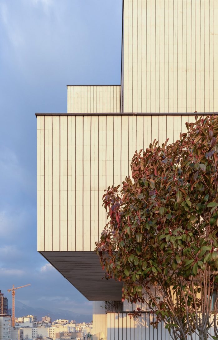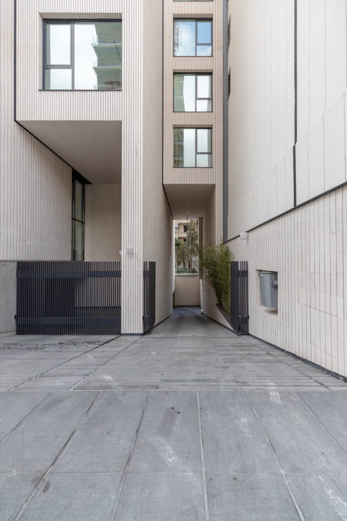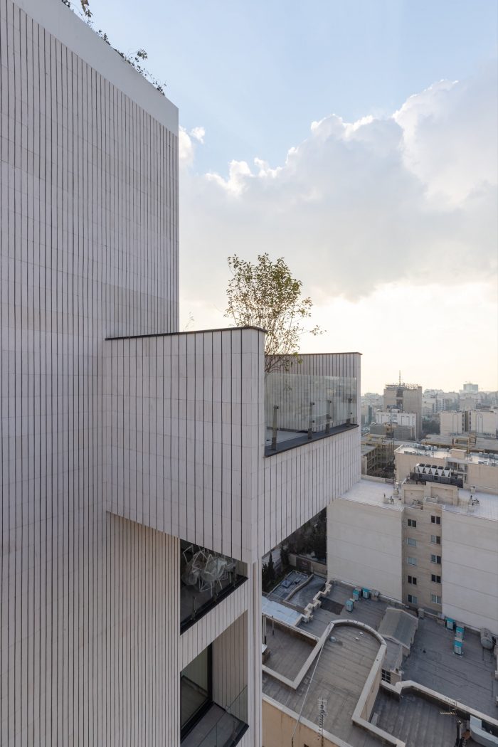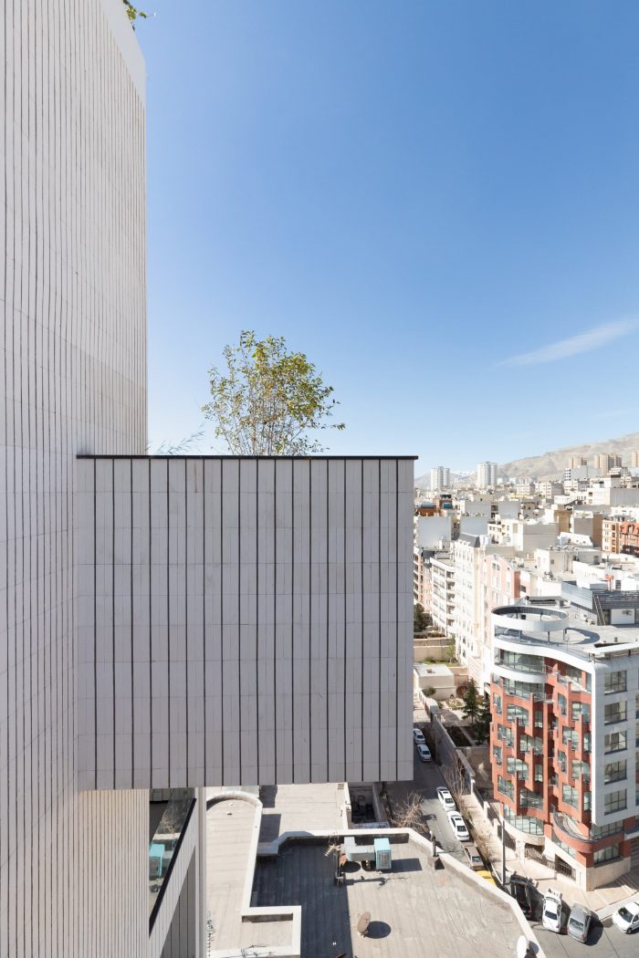 The building follows the typology up to the height of the adjacent one and above that, by changing the plan, tensions and contrasts start from the windows’ shapes and profiles and goes till ultimately flourishes in terraces and consoles. The type of building architecture tries to resolve the third facade concern by a multi-layer design of volume, striped facade and also by the location of the terraces and the material used in the building. In façade, brick was used as the principal medium of construction, tectonic intent and aesthetic expression. Bricks create different patterns sitting on each volume facade stripes and through some lines, they make various intervals and textures which are easily distinguishable.