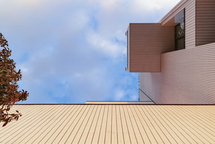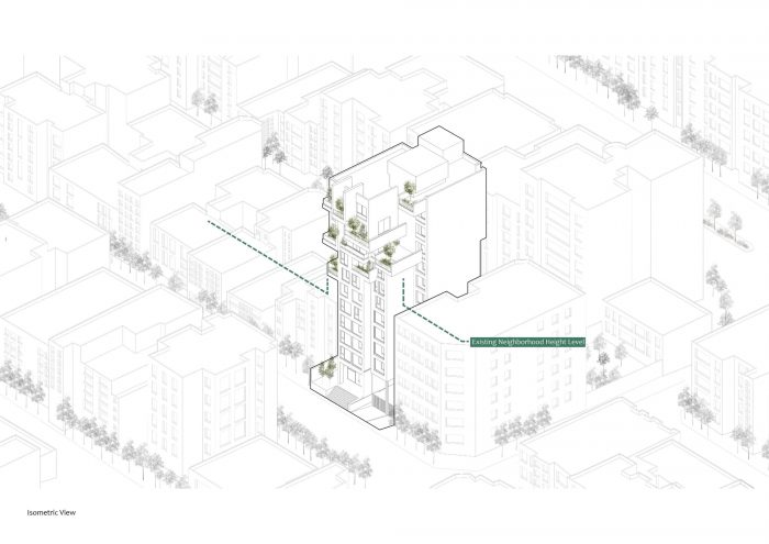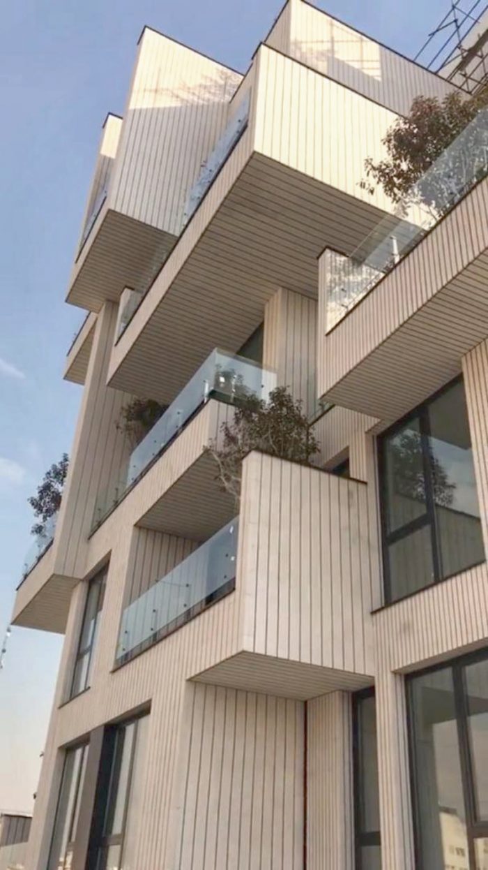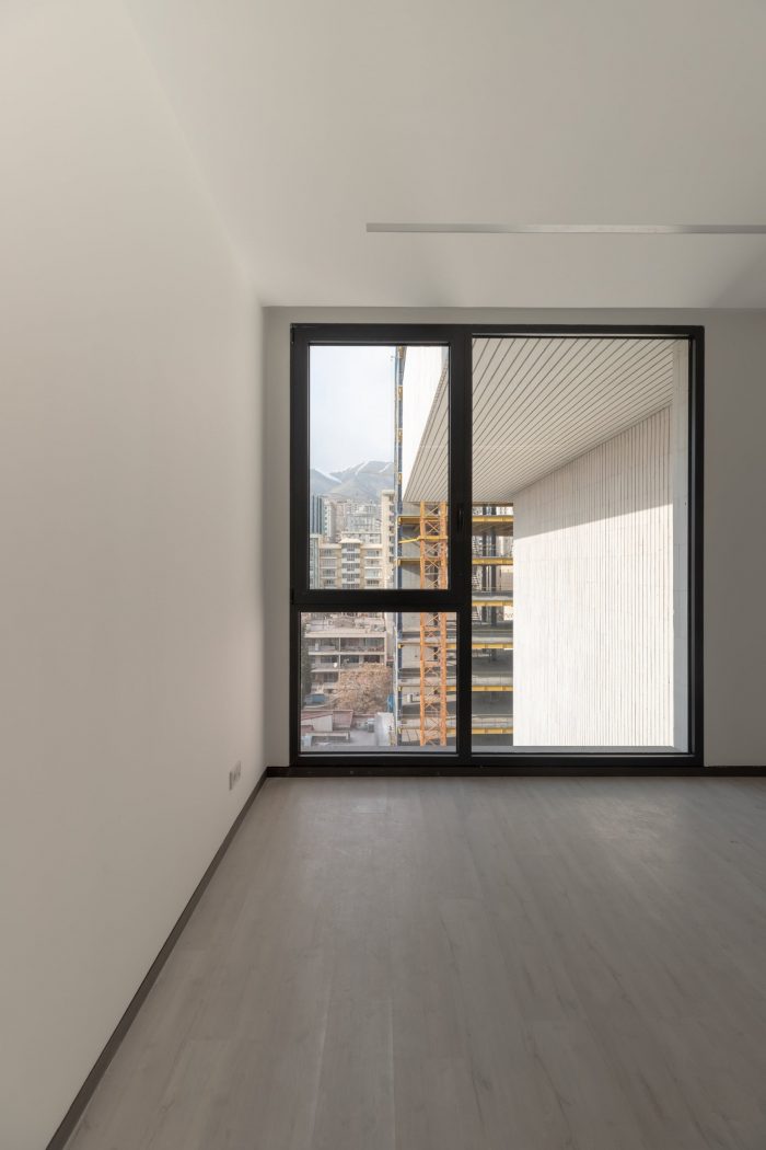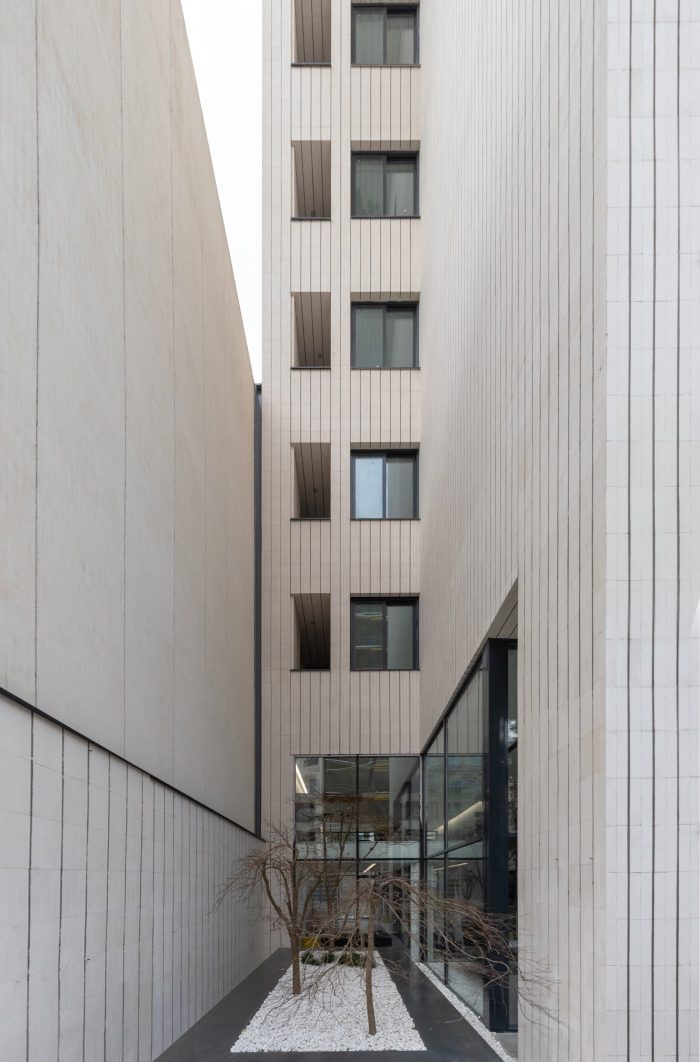 The building follows the typology up to the height of the adjacent one and above that, by changing the plan, tensions and contrasts start from the windows’ shapes and profiles and goes till ultimately flourishes in terraces and consoles. The type of building architecture tries to resolve the third facade concern by a multi-layer design of volume, striped facade and also by the location of the terraces and the material used in the building. In façade, brick was used as the principal medium of construction, tectonic intent and aesthetic expression. Bricks create different patterns sitting on each volume facade stripes and through some lines, they make various intervals and textures which are easily distinguishable.