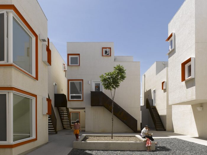由于入口和窗户位于街区的四面,这个项目没有后方,因此提高了街道的质量和各个方向的安全保障。此外,一个典型的住宅至少在建筑的两边有8个或更多的窗户,提供了充足和多样的视野、日光和交叉通风的机会。窗户周围深陷的鲜艳的橙色罩子调节了隐私和单位的视野,使中心村在城市中具有独特的身份。随着时间的推移,该项目展示了创造性的建筑如何影响城市化和积极影响社会关系。