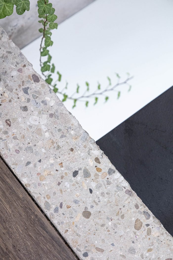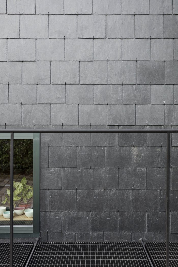 The facade is covered in natural slates, a wink to working with natural materials.
