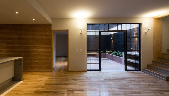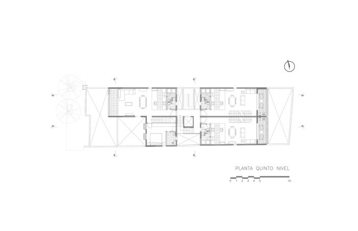 The project consists of 10 houses plus a commercial place on the ground floor. The criterion of free floor is fundamental to maximize the area and optimize the architectural program for each house, the spatial relationship between exterior and interior is achieved by means of floor to ceiling windows that connect the patios and balconies with public areas such as living room and dining room of each house. This allows to maximize the lighting and natural ventilation throughout the space.