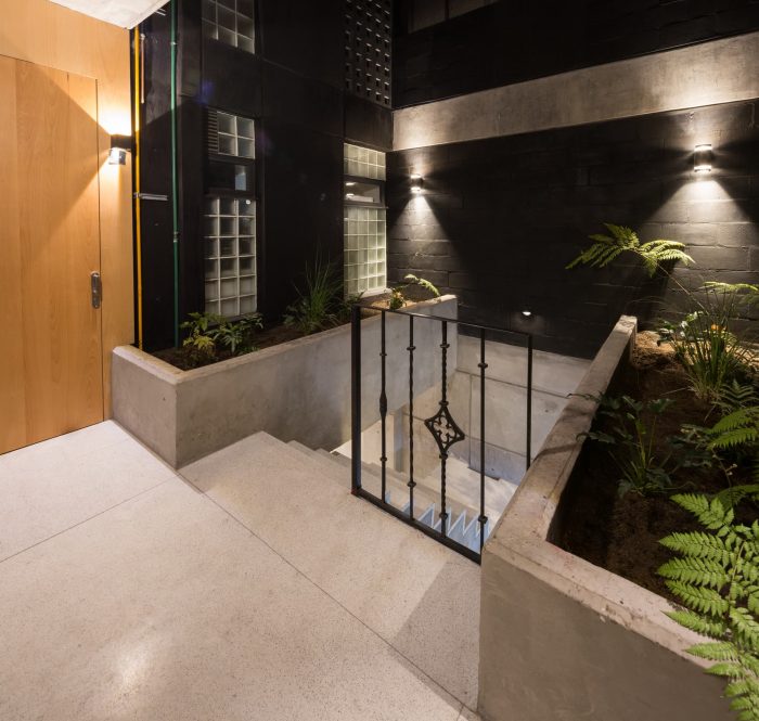 每个住宅的内部循环是一条非常坦率的纵轴,分布在不同的空间。该建筑采用黑色块状墙和黑色混凝土墙的侧切来加强结构,并采用明显的混凝土板来框住东西两面的阳台。