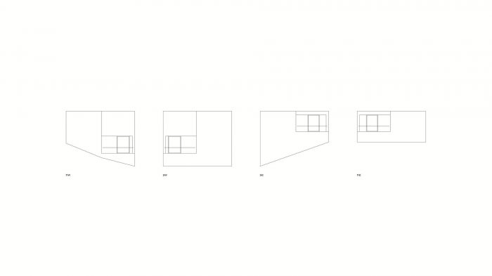 平面图是基于一个正方形的4个象限=正方形。其中三个由整体混凝土墙围住,而第四个象限是一个面向西南的露台。地上第一层的生活区享受着下午和傍晚的阳光。在更高的卧室层,建筑向相反的方向发展,剩下的两个空间单元也环绕着一个露台,但这次是向东北方向。这两个 "房间 "在Z轴上的 "零 "线处接触。