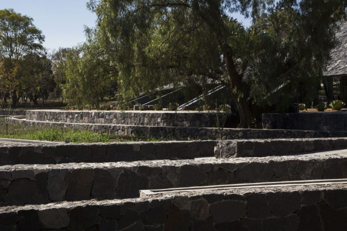 This approach of the Pavilion allows visualizing the harmony, direct interrelation, and fusion of the natural and the human, the existing and the project, and the landscape and the architecture. Where previously there was a vehicular parking lot, there is now the Agroecological Zone with various plots of rotating crops, contained by stone walls as "tecorrals". These offer a new landscape in harmony with the roof of the Pavilion while improving the environmental conditions of the space and promoting biodiversity. This area also seeks citizen participation through various educational, demonstration, and agricultural production programs.
