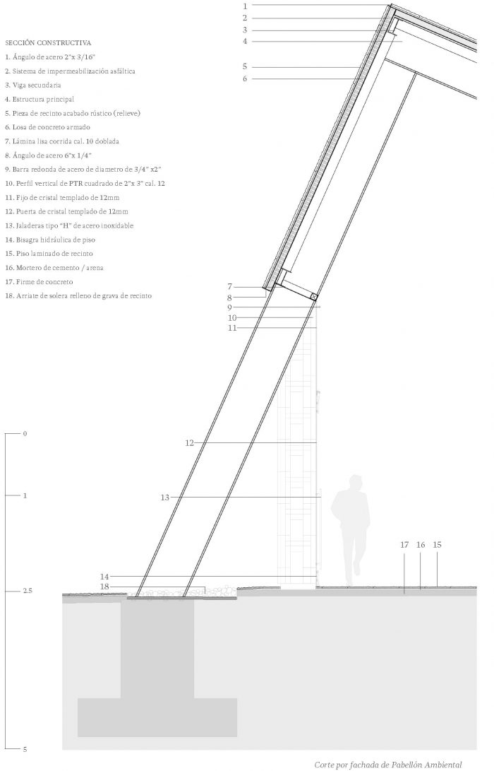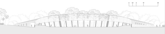 These characteristics highlight its versatility and spatial dynamism to house those activities and exhibition programs that need some shelter and shade. The experience of feeling direct contact with the Gardens/Walks is also favored, which provides the visitor with a unique landscape from inside the Pavilion, enhancing the importance of natural elements and the landscape in an educational and cultural environment.