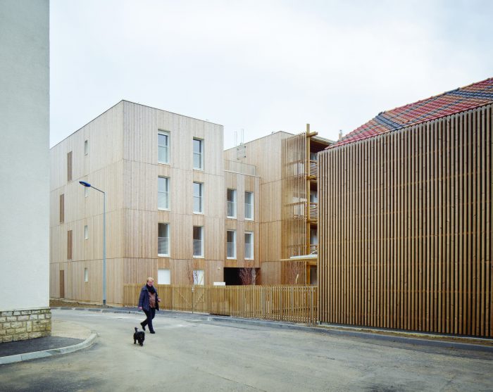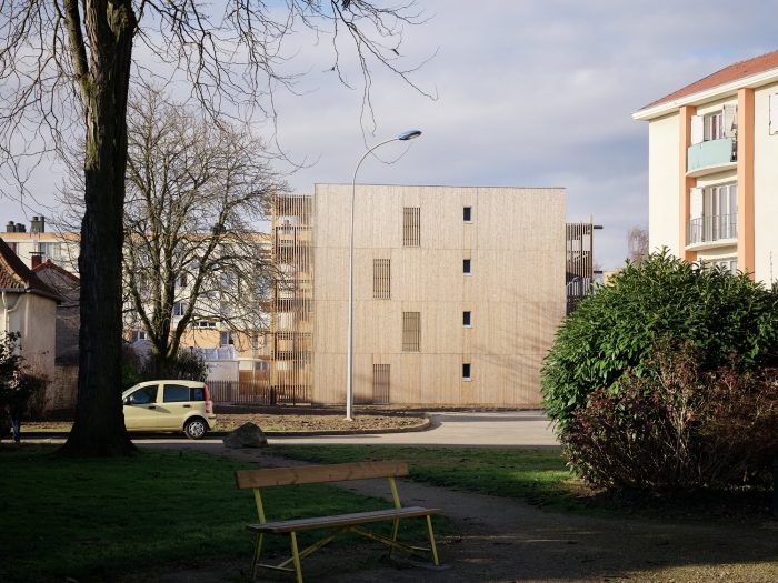 Located in Chalon-sur-Saône, the Bellevue district consists of a variety of building typologies typical to that of a city’s suburbs. Situated on an enclosed site and set back from the street, this project responses to its surrounding environment and to the design brief that imposed a timber construction solution.