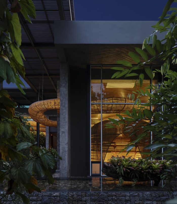 A state of flux can be described in this project: endless change and transformation, a continual passage of movement, guided by nature and the natural forms embodied in the composition of the rattan. In turn, it can be said that nature provides the versatility of natural materials like rattan, grown in abundance all over Southeast Asia. "It is not hard to be sustainable in construction if we adapt to our environment. Why would we use synthetic, toxic plastics when we have all the noble materials we need at our fingertips?" asks Keane.