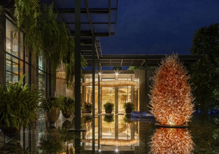 An Art Collector's gallery in Chiang Mai, Northern Thailand consisting of several interior pavilions enclosed by intricate gardens with exterior sculptures and ornate water features. Enter projects Asia was commissioned to design the display of bespoke artworks, using all-natural materials. The international collection of silverware, fine china, and porcelain includes the largest Wedgwood collection in Southeast Asia. The owner and avid collector sought to contextualize a lifelong ambition to exhibit the treasures gathered over a 50-year period. Traditionally a clinical space in which art objects meet an audience, Enter Projects Asia was challenged to bring life to the gallery, with zoning, lighting, and seating in their signature style blending 3D geometries with traditional Thai craftsmanship. "We sought to create an immersive experience, giving the space a warmth and depth uncharacteristic of conventional art galleries" states Patrick Keane, Enter Projects Asia Director.