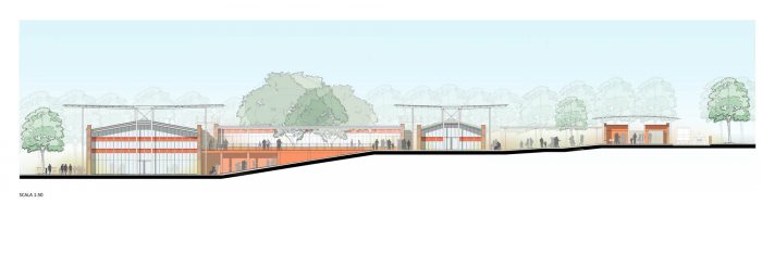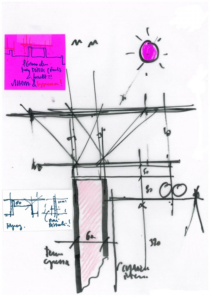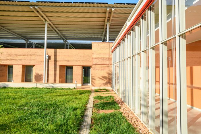 Earth is the raw material used to build the homes of the poorest people in most parts of the world. It’s a simple, cheap building technique but one which, in Africa, is associated by most people with a past of poverty that needs to be forgotten. We were fascinated by the idea of giving back some dignity to this technique, using the excavated land to build the load-bearing walls with the rammed earth technique.