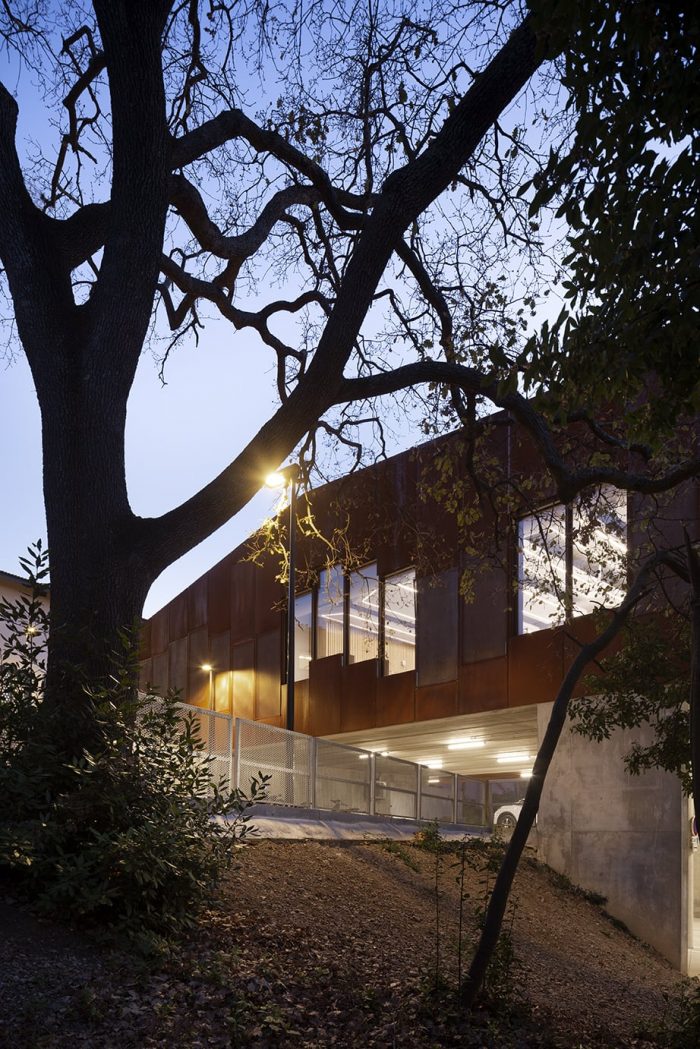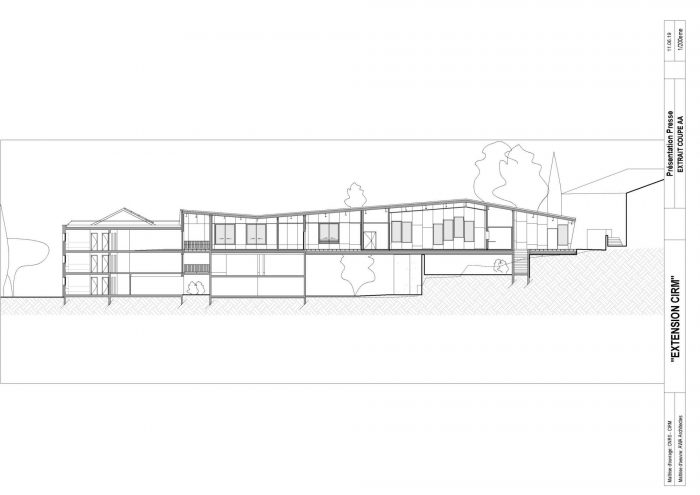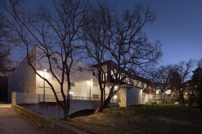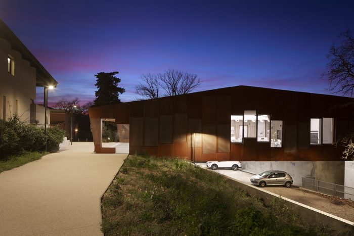 The main idea of the project was to create a link between two entities of the CIRM: the accommodation building and the Bastide. This link takes the form of a building bridge hosting the site's training areas: conference room, workroom, and offices. The use of spaces around the Mediterranean basin is traditionally based on a close relationship between the interior and exterior.
