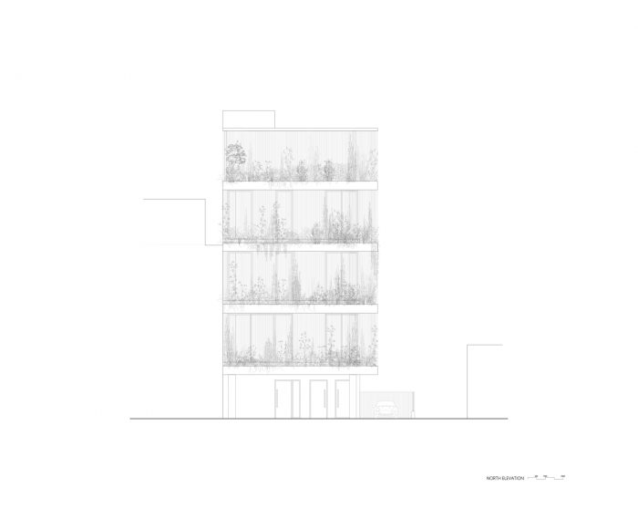 The name of the building derives from the creation of a private vertical garden, which aims to offer its users the same benefits as a public one while deconstructing the boundaries between the building and its neighborhood, and redefining its identity as a private building, a small-scale ‘Urban Garden’. Naturally, a residential building proposal is limited to its programmatic use and its plot boundaries, creating a division between the building's occupants and the neighborhood.