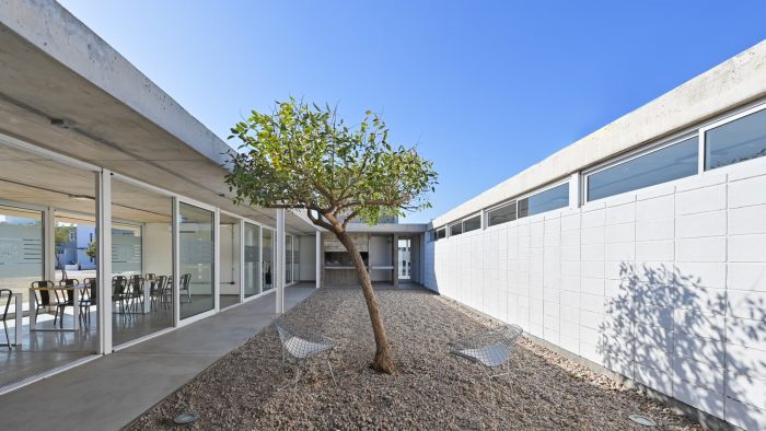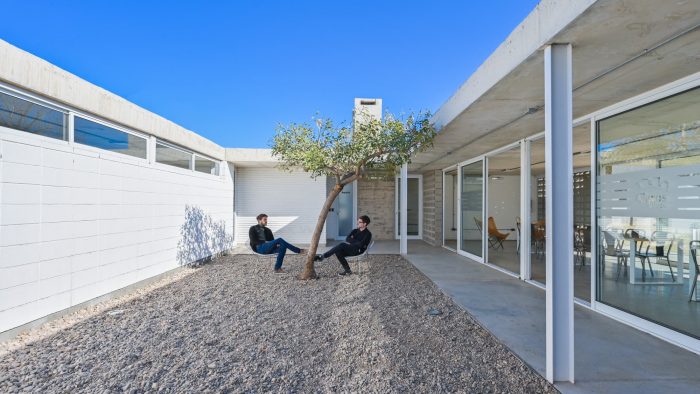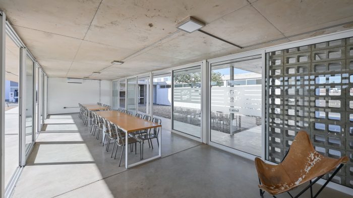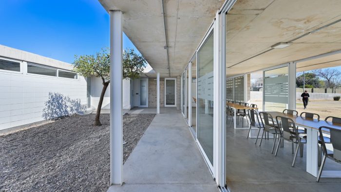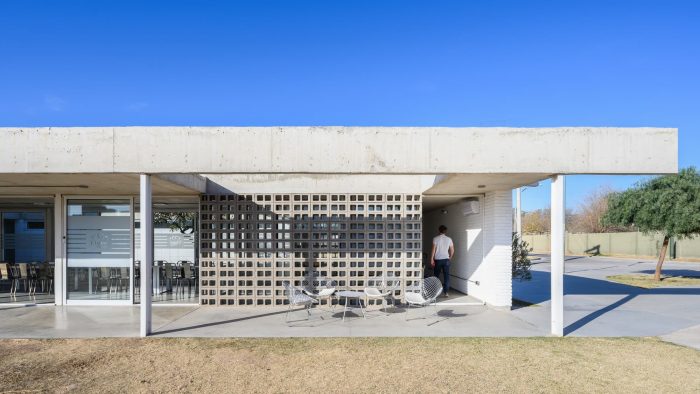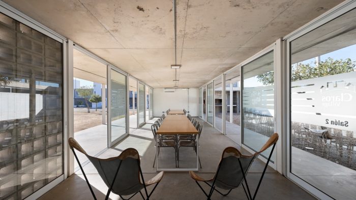 Regarding its materiality, special attention is paid to the game generated by the different textures (unified through color) of the various ways of solving a masonry, a slab, a column, etc.