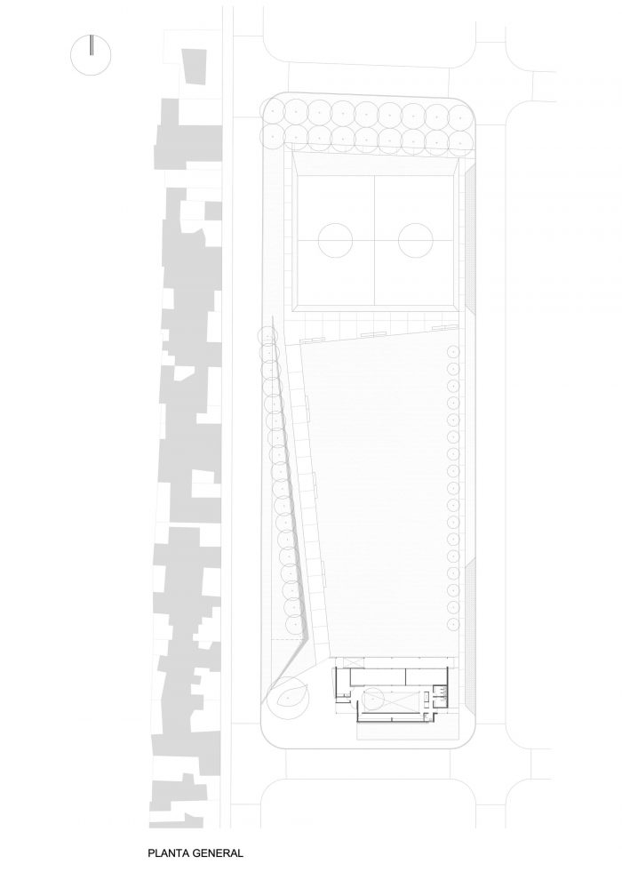场地面积约为6734平方米,在执行之前沉浸在两种情况下,需要给南北方向的道路提供车辆的连续性,以及在上述道路的另一侧,存在一个安排在铁路区域的流行社区。根据这些,该设备被安排在南部,以巩固该社区的城市正面。这个决定产生了一个向北的完全开放的空地,安排在体育基础设施和东部之间。这两个基础设施之间的极性被强调。