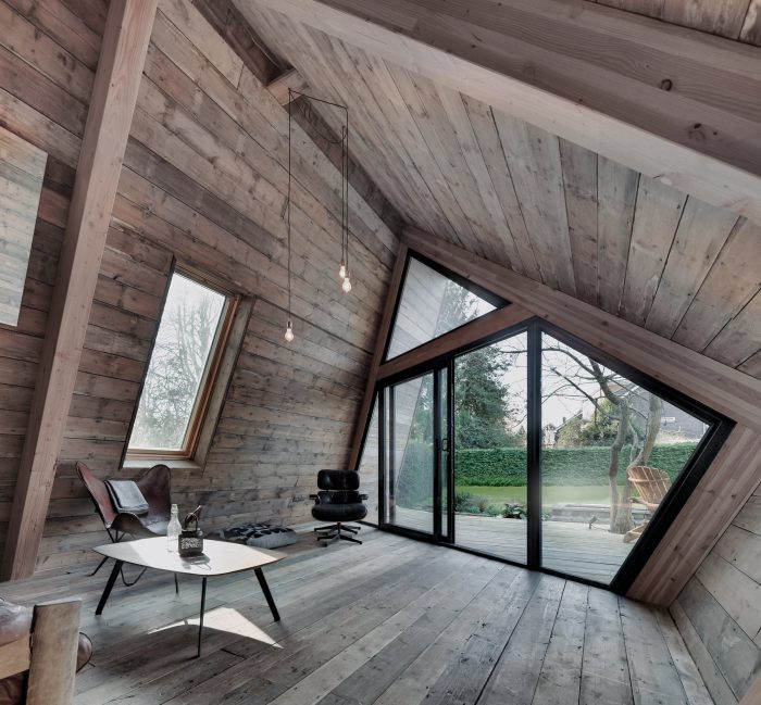 This sustainable approach to construction gives a very natural texture to the building and emphasizes the relationship with the surrounding woodlands. The result is a tranquil space that makes use of natural materials, glass, and its context to create a real sense of connection to the surrounding woodlands and provide a small escape from the everyday.